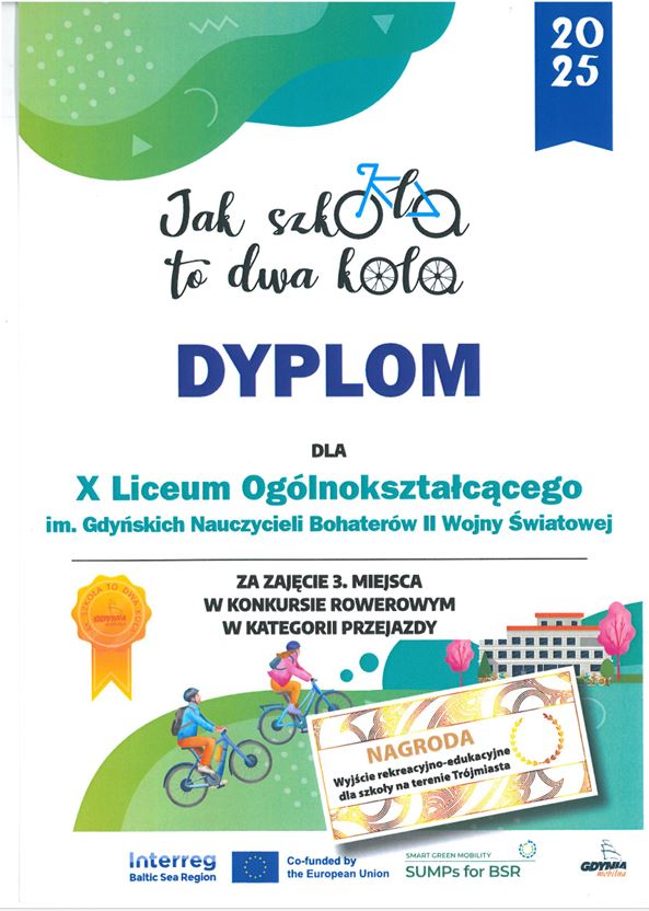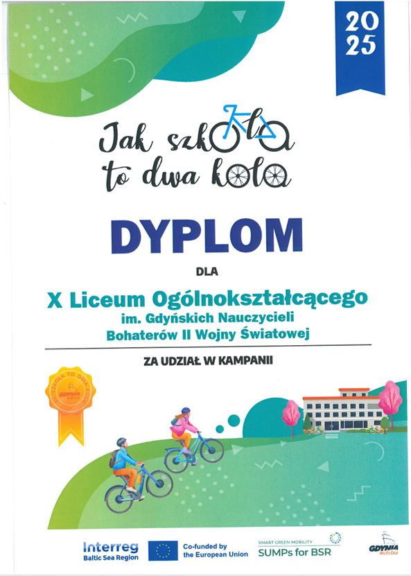 Nasza szkoła wzięła udział w pierwszej edycji kampanii „Jak szkoła to dwa koła” promującej jazdę na rowerze. Kampania  skierowana była do uczniów gdyńskich placówek edukacyjnych, zaś jej celem jest zachęcenie młodych ludzi do aktywnego stylu życia. W jej ramach uczniowie, którzy zgłosili chęć udziału, wzięli udział w różnego rodzaju konkursach, między innymi: plastycznym, filmowym czy fotograficznym.