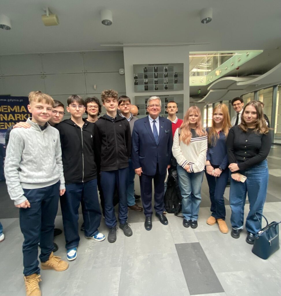 25 listopada uczniowie klasy 2c uczestniczyli w wykładzie otwartym Bronisława Komorowskiego Prezydenta Rzeczypospolitej Polskiej w latach 2010-2015 w Akademii Marynarki Wojennej. Tematem wykładu było „Powstanie Dziewiątki Bukareszteńskiej na wschodniej flance NATO oraz jej dzisiejszy wpływ na bezpieczeństwo międzynarodowe”. Organizatorem spotkania była Akademia Marynarki Wojennej – Wydział Nauk Humanistycznych i Społecznych oraz Fundacja Instytut Lecha Wałęsy. Wykład został zorganizowany w ramach programu MSZ „Regionalny Ośrodek Debaty Międzynarodowej”. Nasi uczniowie wysłuchali również pytań studentów AMW i odpowiedzi pana Prezydenta dotyczących aktualnej polityki międzynarodowej oraz miejsca Polski w strukturach NATO.