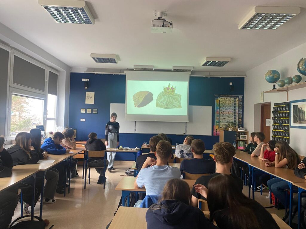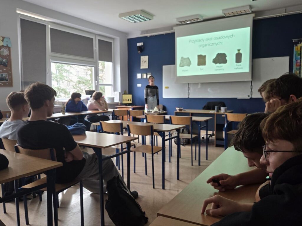Dnia 12 listopada uczniowie klasy 1 d (matematyczno – geograficznej) uczestniczyli w warsztatach prowadzonych przez studentkę oceanografii UG. Podczas zajęć młodzież naszej szkoły  miała okazję poznać tajemnice minerałów i skał – ich wygląd, właściwości i pochodzenie.