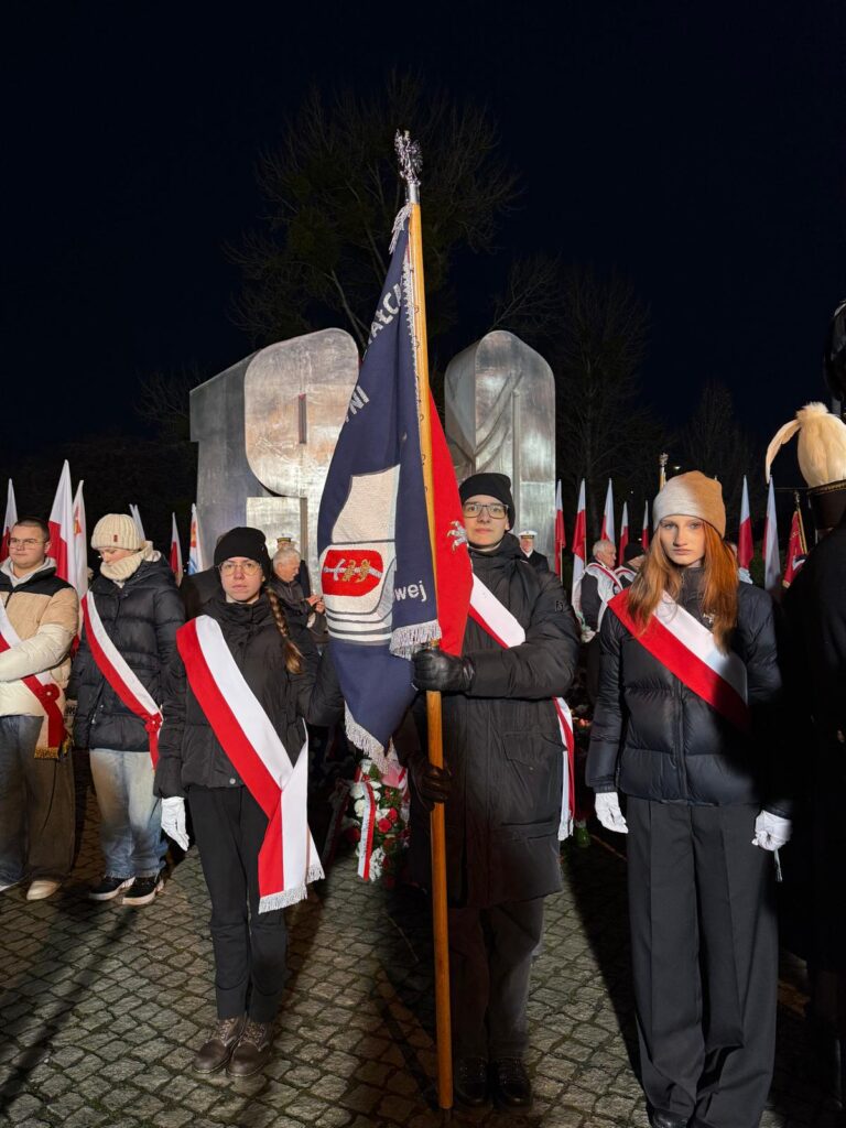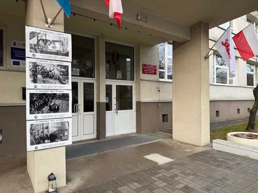Dnia 17.12.2025 o godz. 6:00 reprezentacja 30 osób uczniów naszej szkoły w ramach edukacji obywatelskiej  wzięła udział wraz z opiekunami w uroczystościach upamiętniających tragiczne wydarzenia Grudnia ’70 w Gdyni. W obchodach uczestniczył także Prezydent Rzeczypospolitej Polskiej oraz władze naszego miasta. Młodzież złożyła kwiaty pod Pomnikiem Ofiar Grudnia ’70 i uczestniczyła w oficjalnej części uroczystości. Uczniowie udzielili także wywiadu lokalnej telewizji, który mogliśmy obejrzeć tego dnia w „Panoramie”. Warto podkreślić, że również w naszej szkole upamiętnione zostały ofiary tamtych grudniowych wydarzeń. Przed wejściem do szkoły można było oglądać archiwalne fotografie nawiązując do tych dni. Pod zdjęciami zapłonął także pamiątkowy znicz.